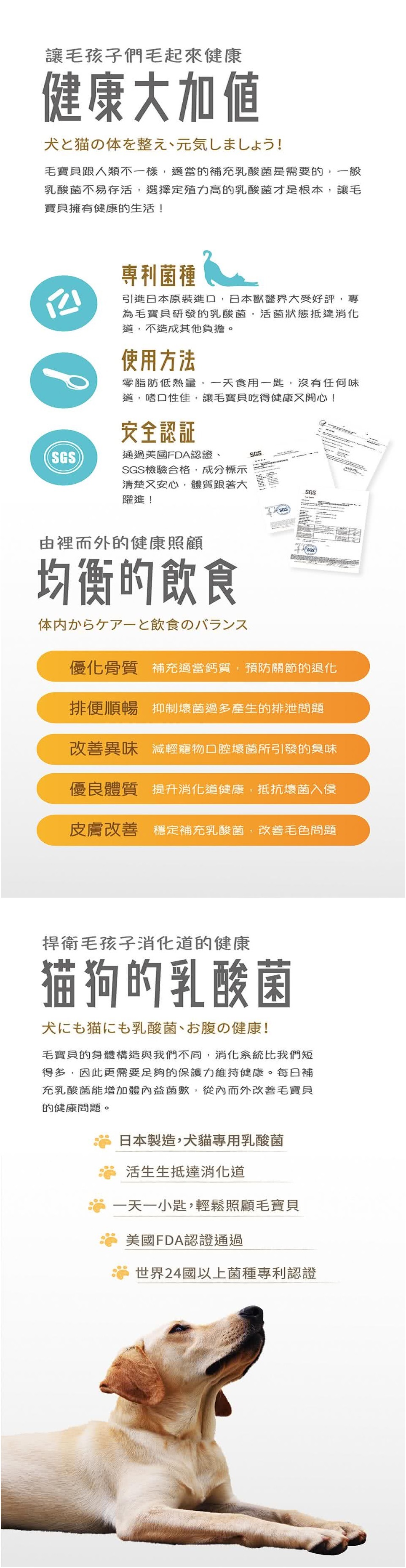 日本人氣最高!優良單一乳酸C菌寵物使用,簡單使用,全面照顧毛孩子健康之本!